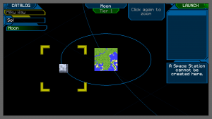 - To go to a moon or space station: select the planet that the moon or space station orbits in the Catalog or by left-clicking on the respective planet icon in the orbital map. Then select again the same planet to zoom in, this will display all moons (if there is any) that orbits that planet. Now select the moon. Then click on LAUNCH.